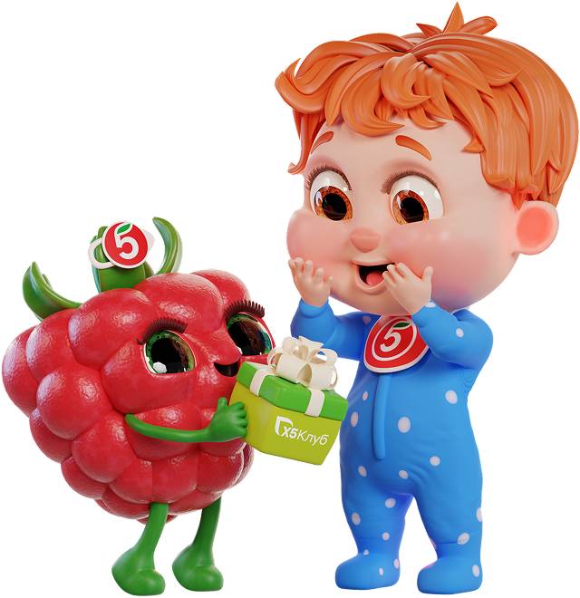 Процесс: В «Детский клуб» в мобильном приложении «Перекресток» вступило миллион клиентов — в честь этого создали яркий ролик-поздравление. Был разработан сценарий с нуля, в ролик поместили 3D-маскотов клуба и использовали моушн-дизайн.